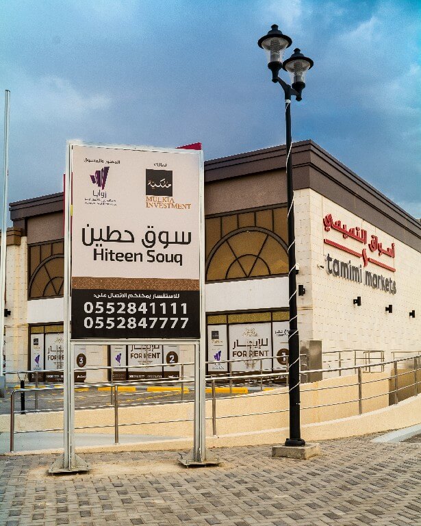 سوق حطين أحد مشاريع صندوق مُلكيّة لتطوير المجمعات التجارية العقاري الذي يهدف الى تطوير المجمعات التجارية وبيعها. يقع بموقع متميز وحيوي بالقرب من تقاطع طريق الأمير محمد بن سلمان بن عبد العزيز باتجاه الشرق مع تقاطع طريق الأمير تركي الأول باتجاه الشمال بحي حطين الذي يُعد من الأحياء المميزة شمال مدينة الرياض. المجمع مقام مع مساحة أرض تبلغ 7.766 متر مربع ومساحة بناء 9.556 متر مربع. ويتكون سوق حطين من طابقين تتمثل في سوبر ماركت (أسواق التميمي) بالإضافة الى 20 معرض تجاري.